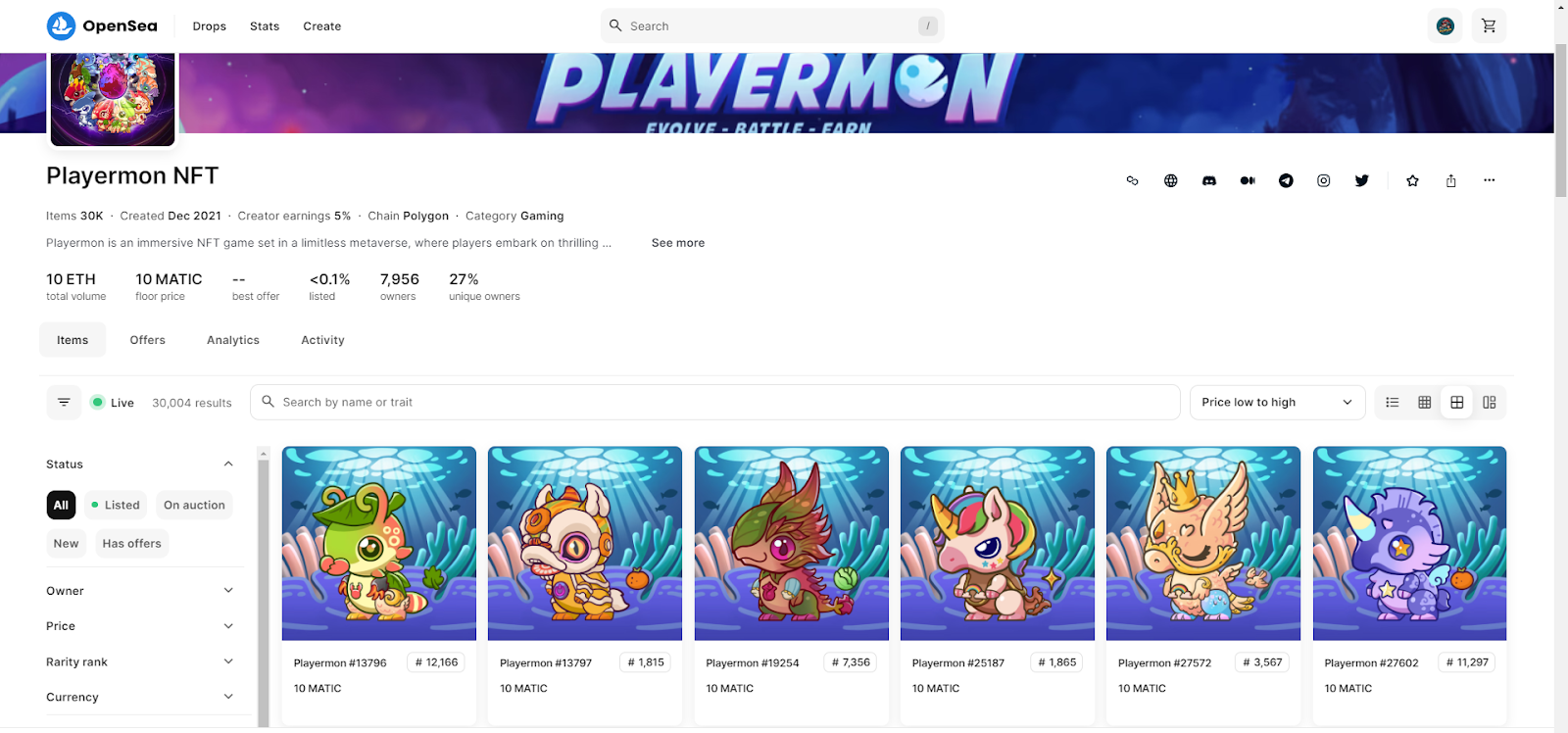 Buying Playermon NFTs on OpenSea is a straightforward process. Here's a step-by-step guide: